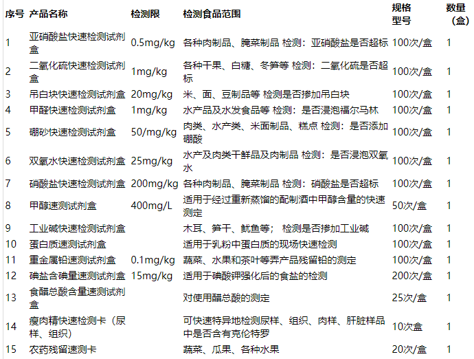 食品安全快速检测箱具体配置(可选)可以按照客户要求调配、定做