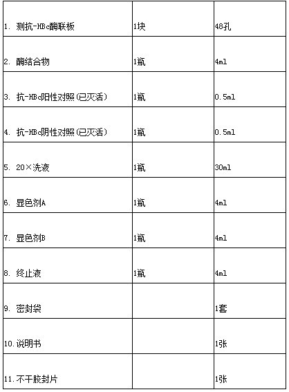 本品采用竞争抑制法原理,用基因重组乙型肝炎病毒核心抗原包被酶联反应板,加入待检标本的同时加入酶标记多克隆抗-HBc,通过TMB显色与否指示人血清或血浆中是否含有乙型肝炎病毒核心抗体。