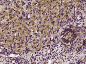 多聚甲醛固定,石蜡包埋(大鼠卵巢组织);用柠檬酸钠缓冲液(pH6.0)煮沸15min后获得抗原;用3%过氧化氢阻断内源性过氧化物酶20分钟;阻断缓冲液(正常山羊血清)37℃30min;用(BAG1)聚氯乙烯进行抗体孵育未结合的Al抗体在1:400下在4°C下过夜,然后根据SP试剂盒(兔子)说明和DAB染色进行操作。